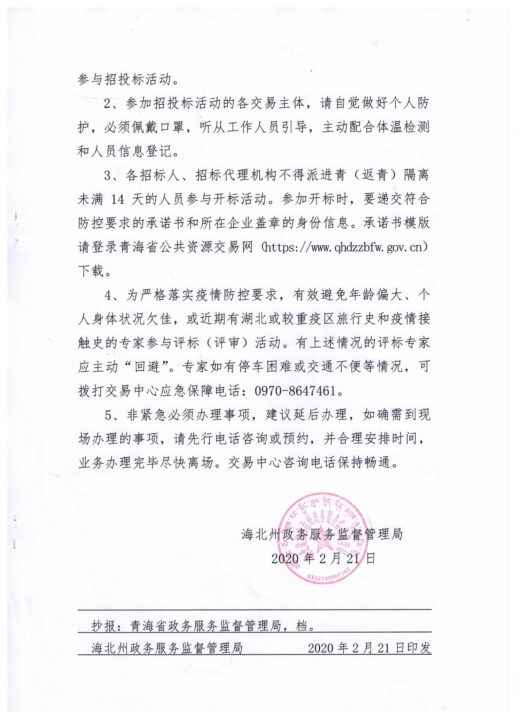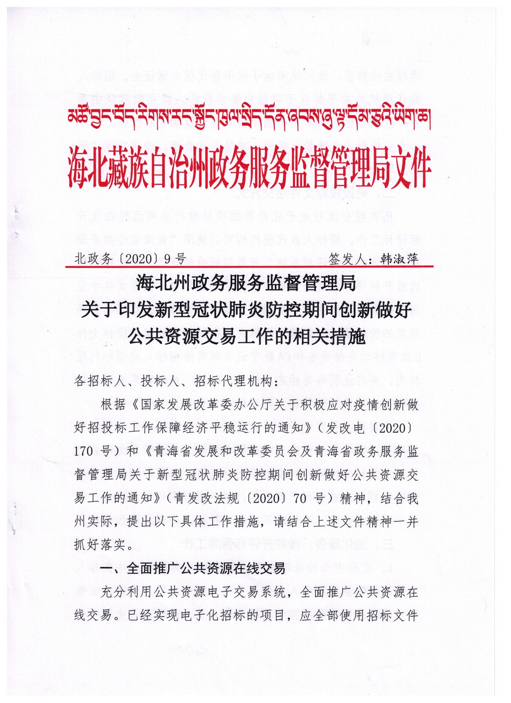 海北州政务服务监督管理局关于新型冠状肺炎防控期间创新做好公共资源交易工作的相关措施