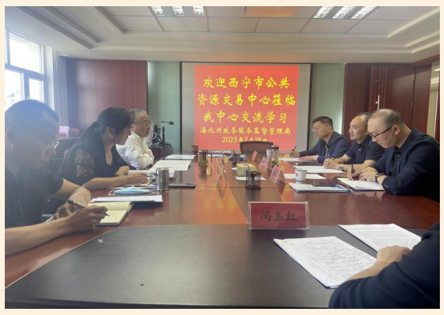 7月19日上午,西宁市公共资源交易中心副主任蔡龙云一行到我州公共资源交易中心调研指导工作,局党组书记、局长吴春雷、交易中心负责人等相关人员陪同调研。