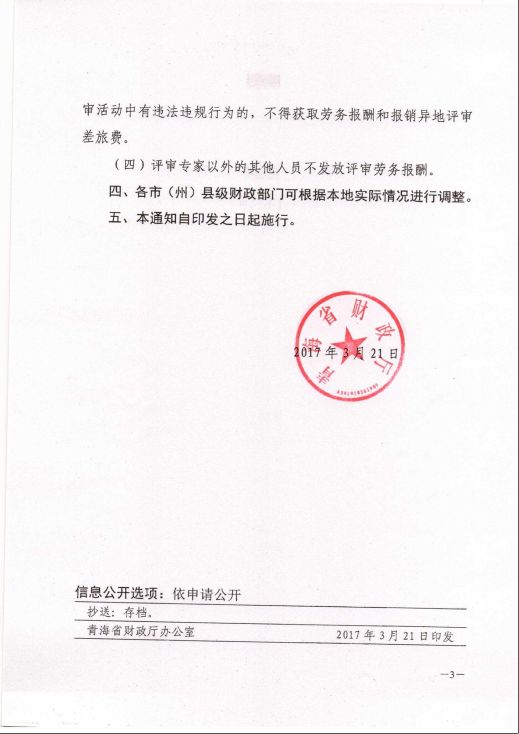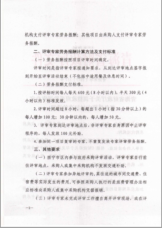 青海省财政厅关于调整政府采购评审专家劳务报酬支付标准的通知