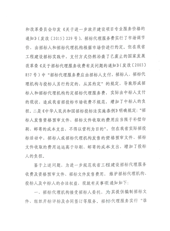 关于进一步规范工程建设招标代理服务收费及资格预审文件招标文件发售费用通知