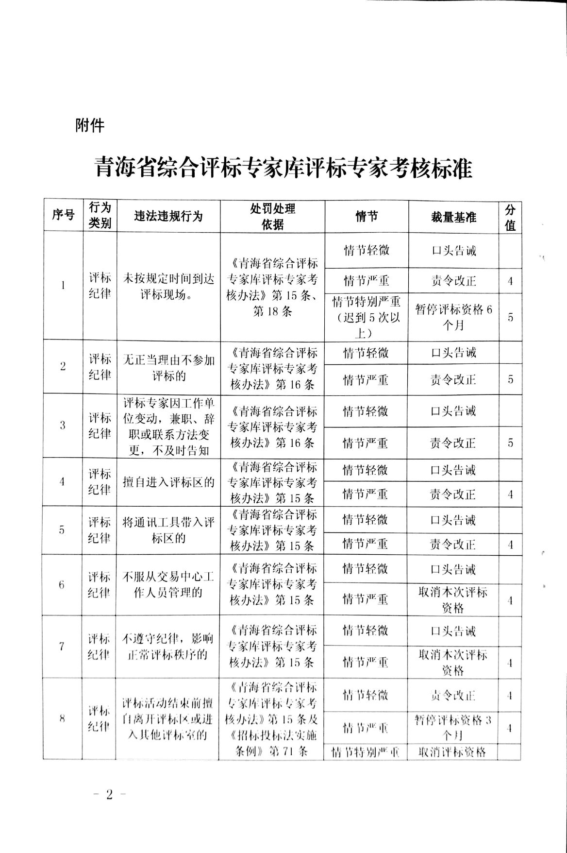 青公资发﹝2016﹞16号 关于印发《青海省综合评标专家库评标专家考核标准》的通知