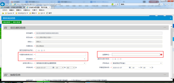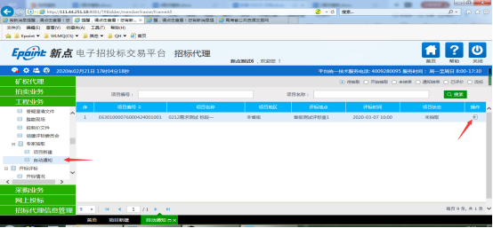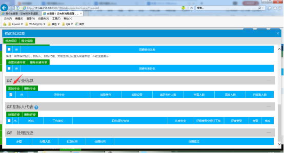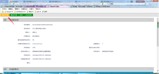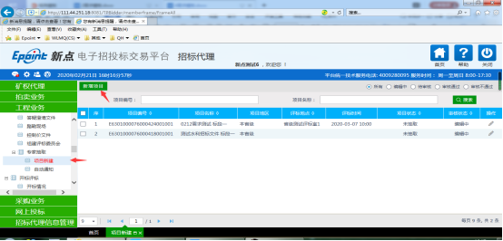 2、选择所要抽取专家的项目,点击【确认选择】进入【新增项目信息页面】