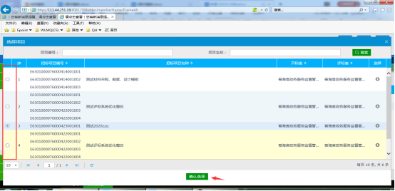 2选择所要抽取专家的项目,点击【确认选择】进入【新增项目信息页面】