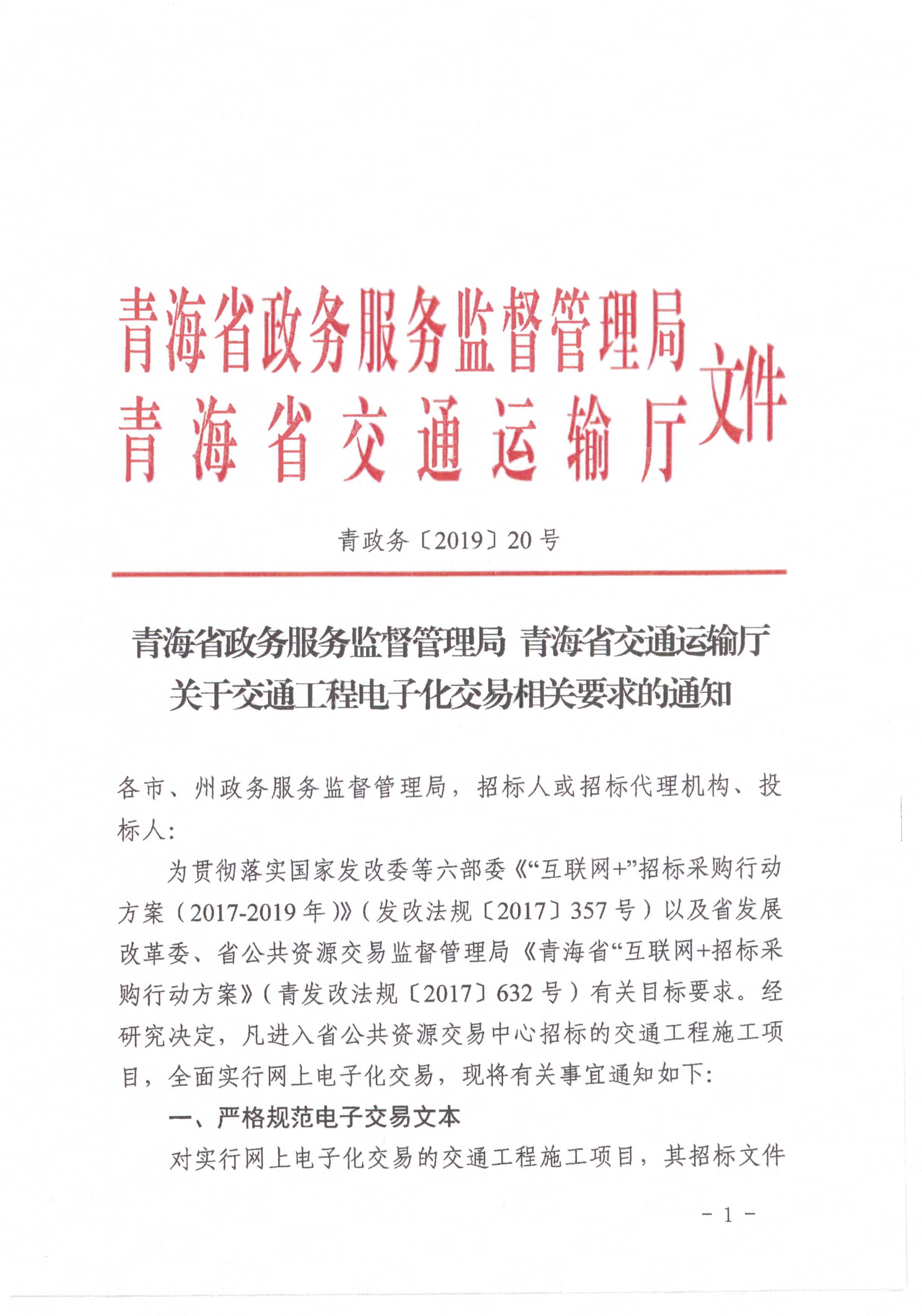 转发青海省政务服务监督管理局 青海省交通运输厅关于交通工程电子化交易相关要求的通知