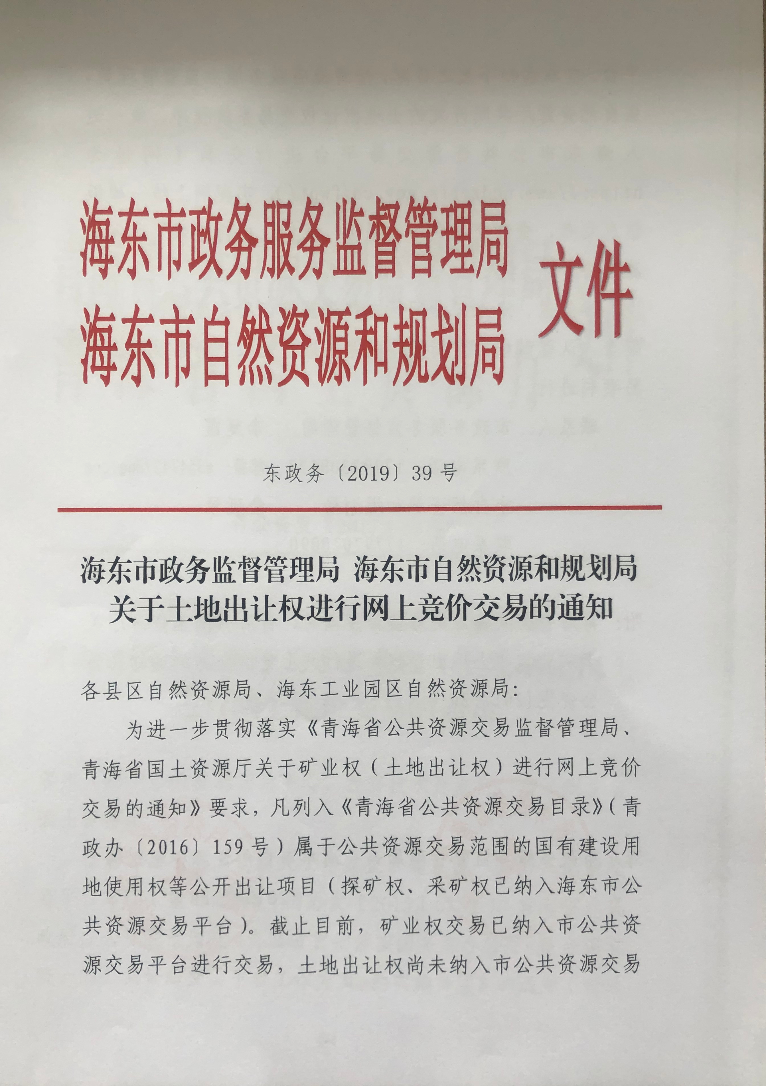 关于土地出让权进行网上竞价交易的通知