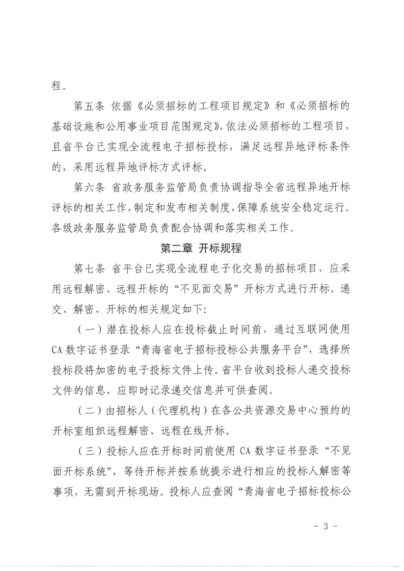 青海省公共资源交易平台远程异地开标评标工作规程(试行)