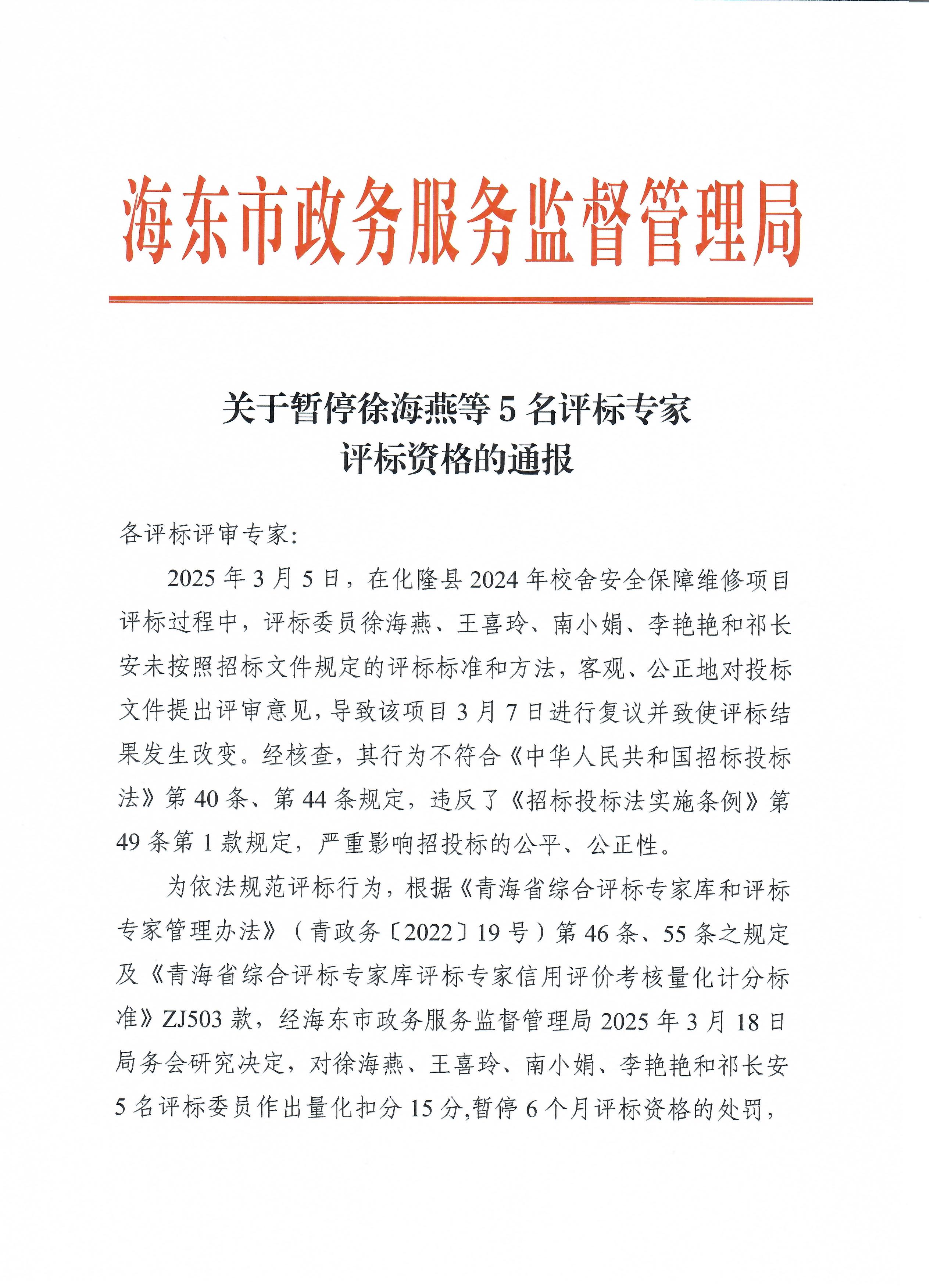 关于暂停徐海燕等5名评标专家评标资格的通报250321.pdf