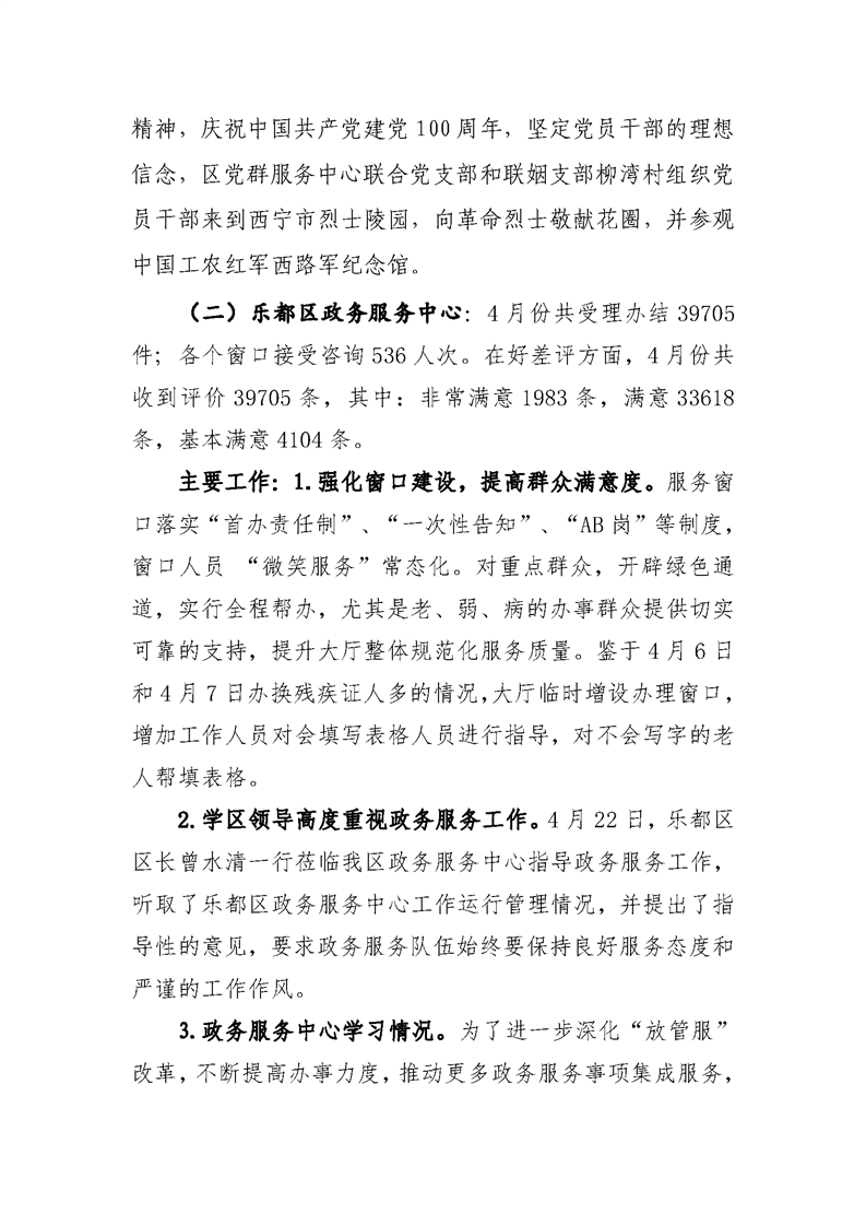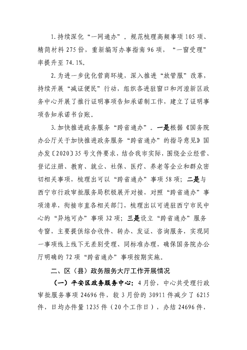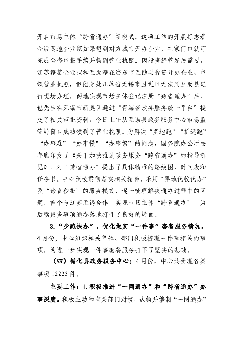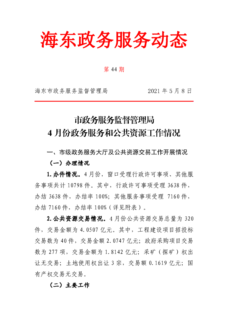 4月份政务服务和公共资源工作情况