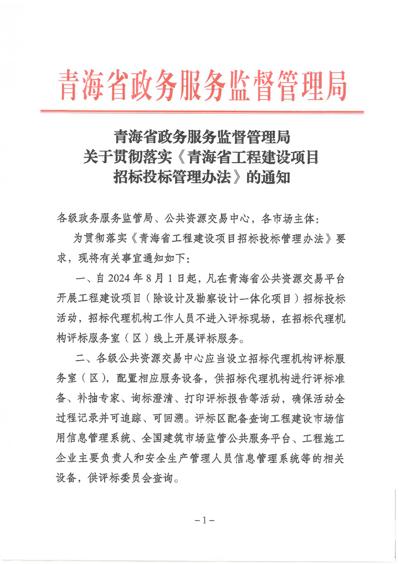 青海省政务服务监督管理局关于贯彻落实《青海省工程建设项目招标投标管理办法》的通知