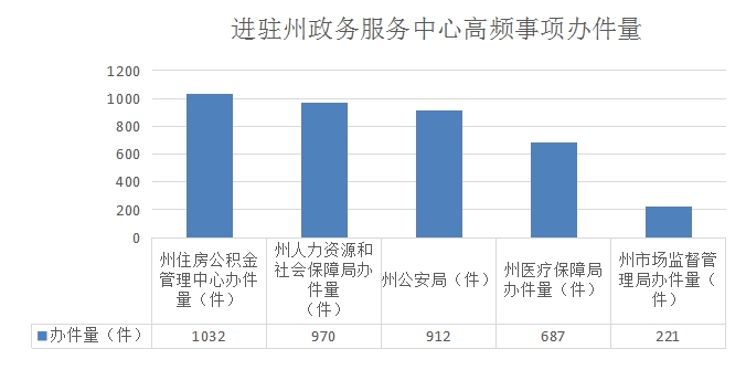 台办件量来看,10月份办件量多的前五名依次为州住房公积金管理中心办件量1032件、州人力资源和社会保障局办件量970件、州公安局办件量912件、州医疗保障局办件量687件、州市场监督管理局办件量221件。