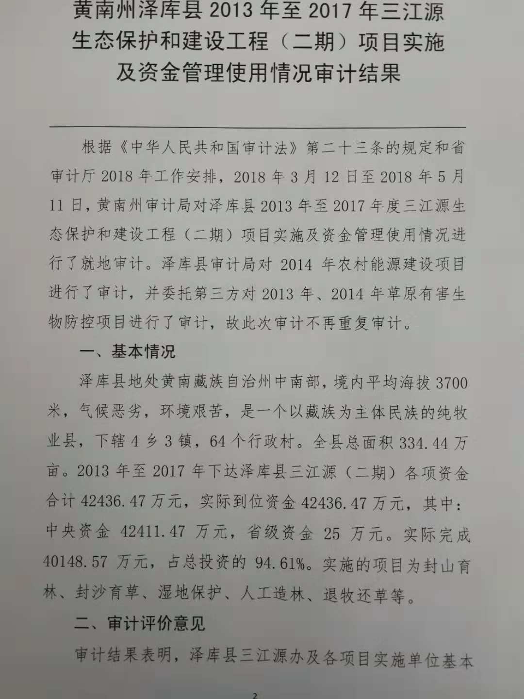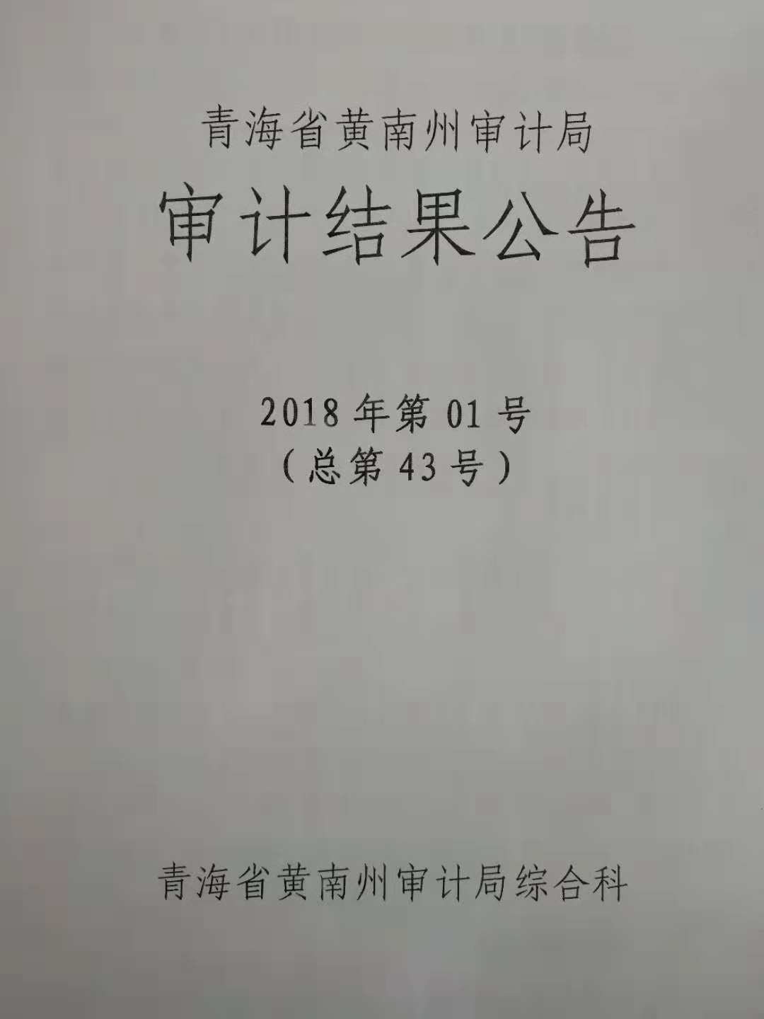 转发青海省黄南州审计局审计结果公告(2018年第01号)