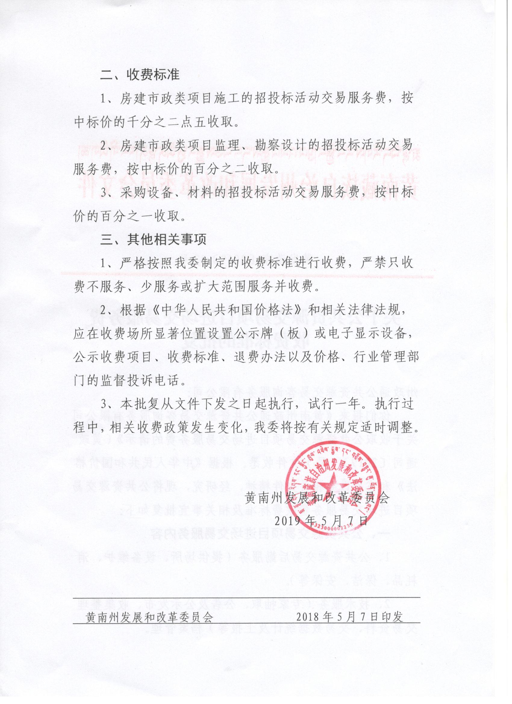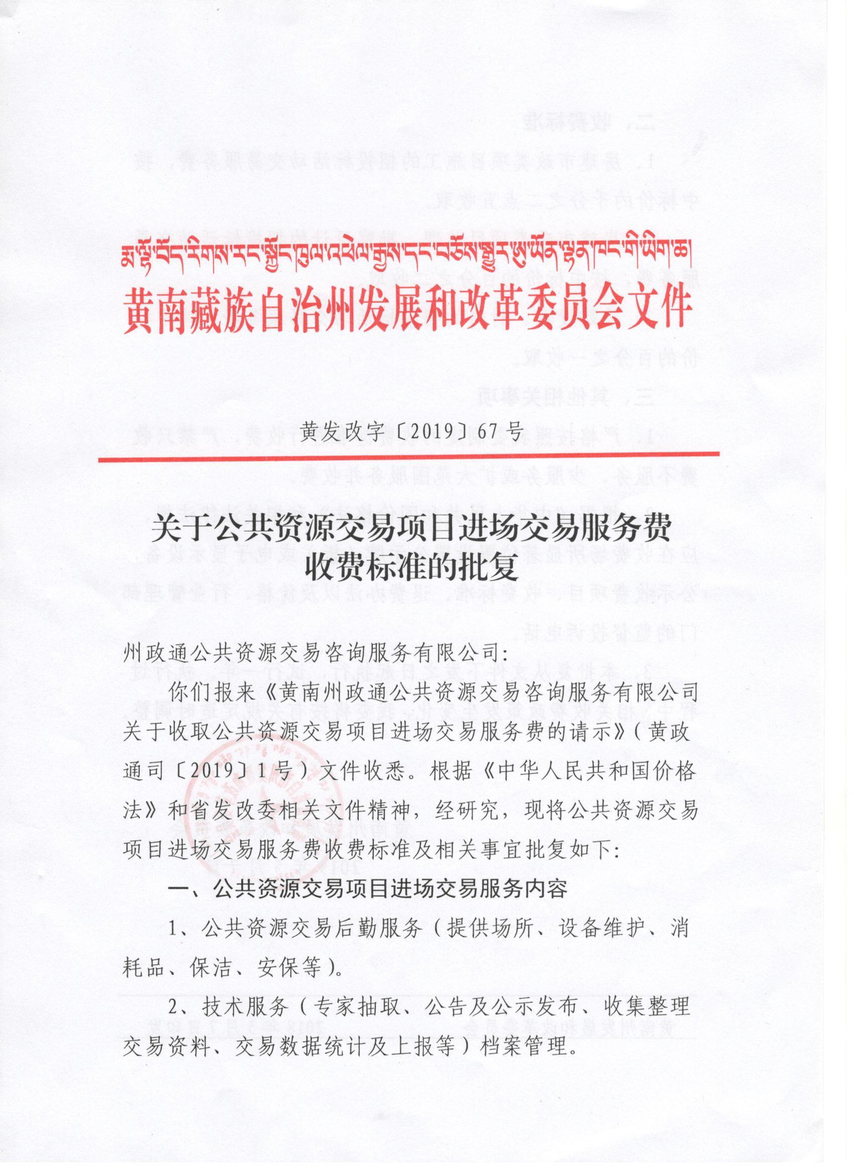 关于公共资源交易项目进场交易服务费收费标准的通知