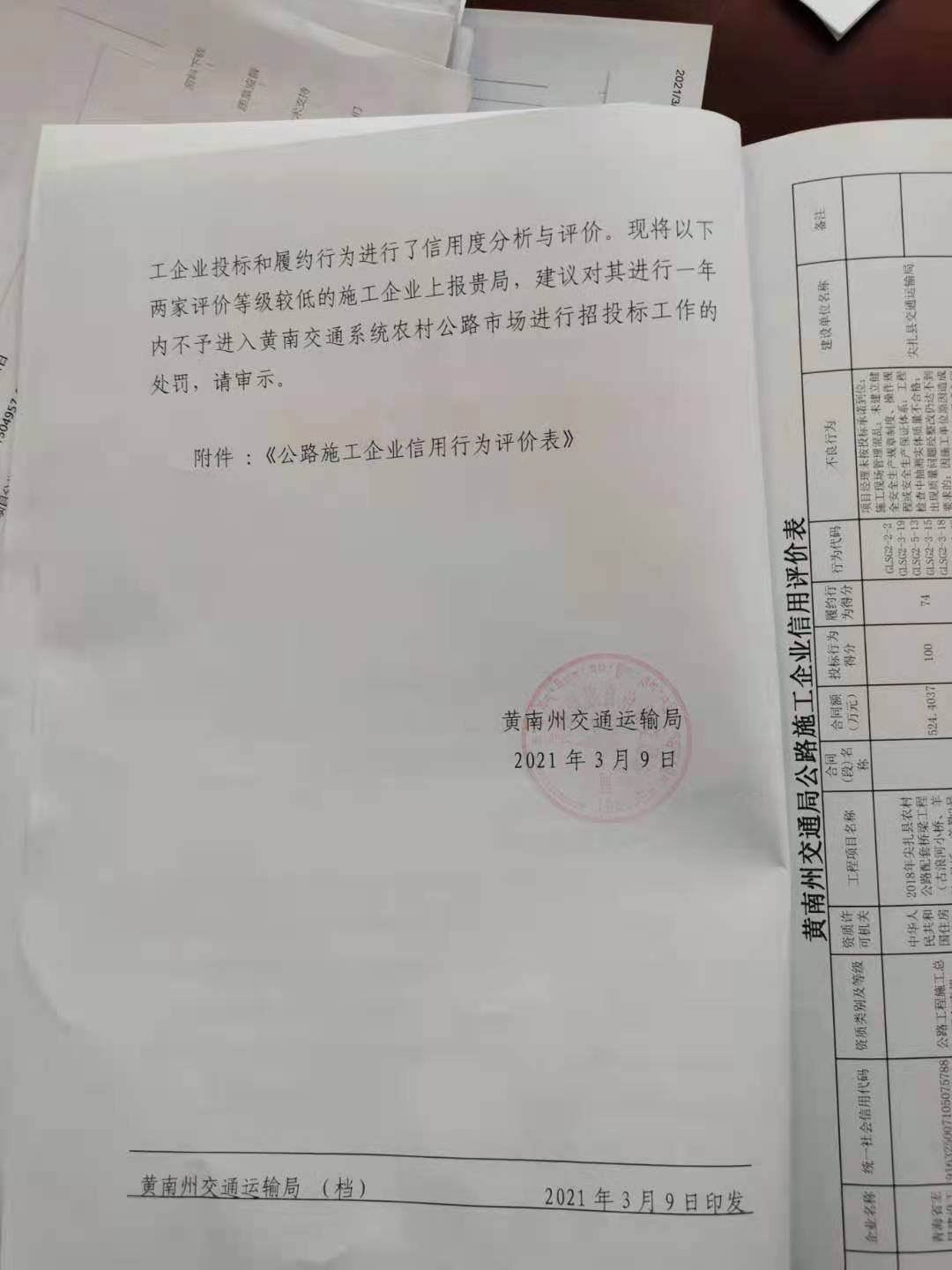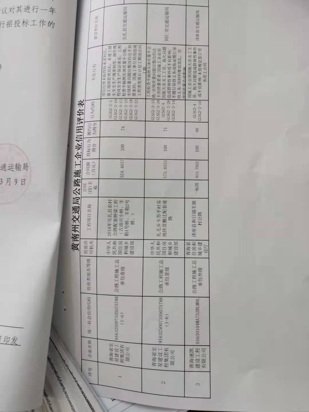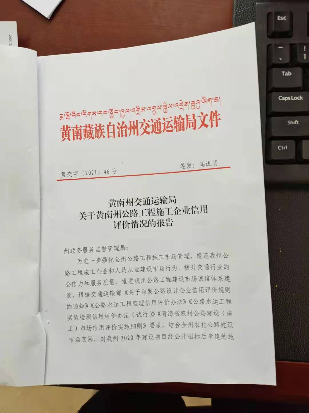 黄南州交通运输局关于黄南州公路工程施工企业信用评价情况的报告