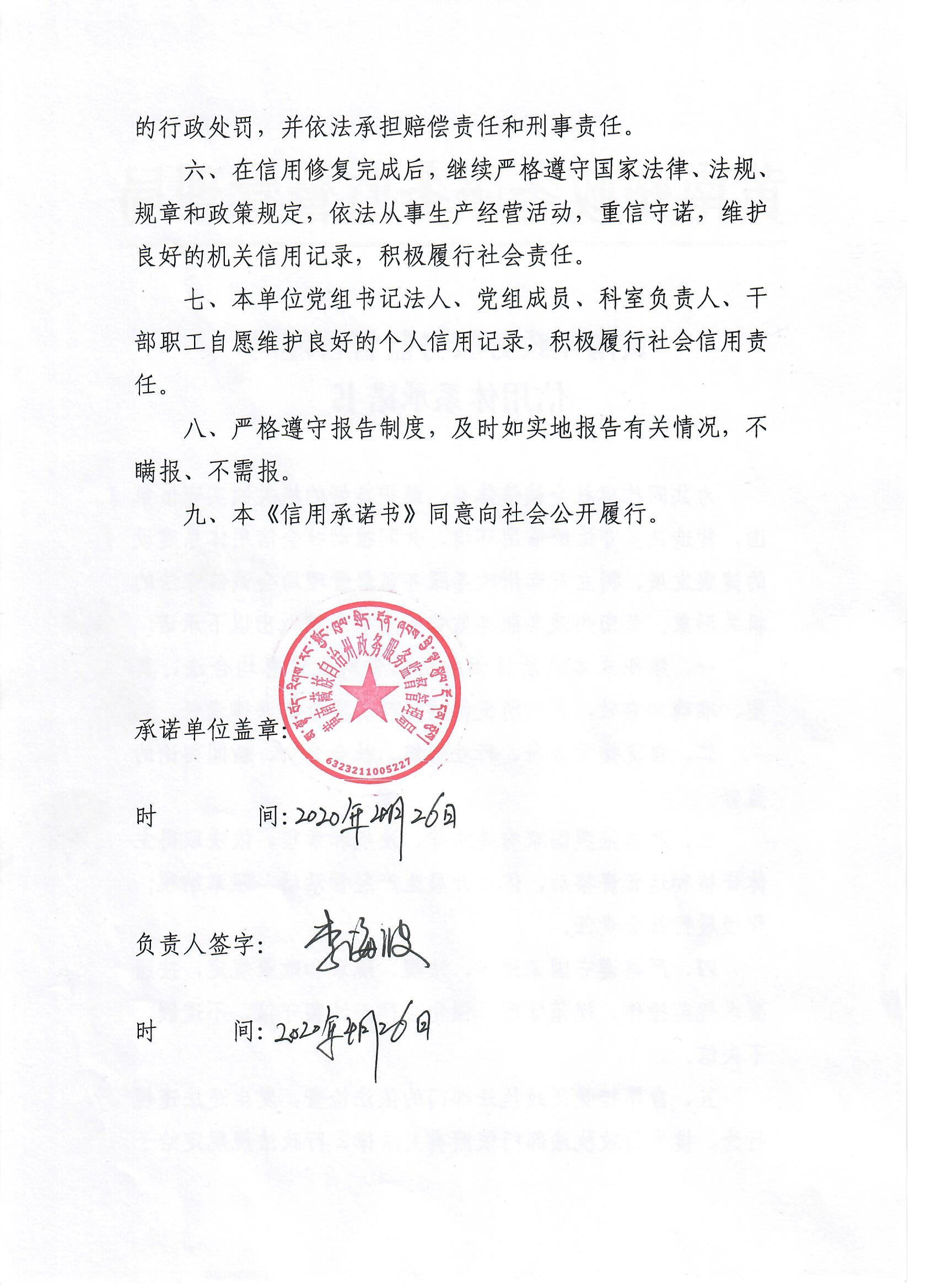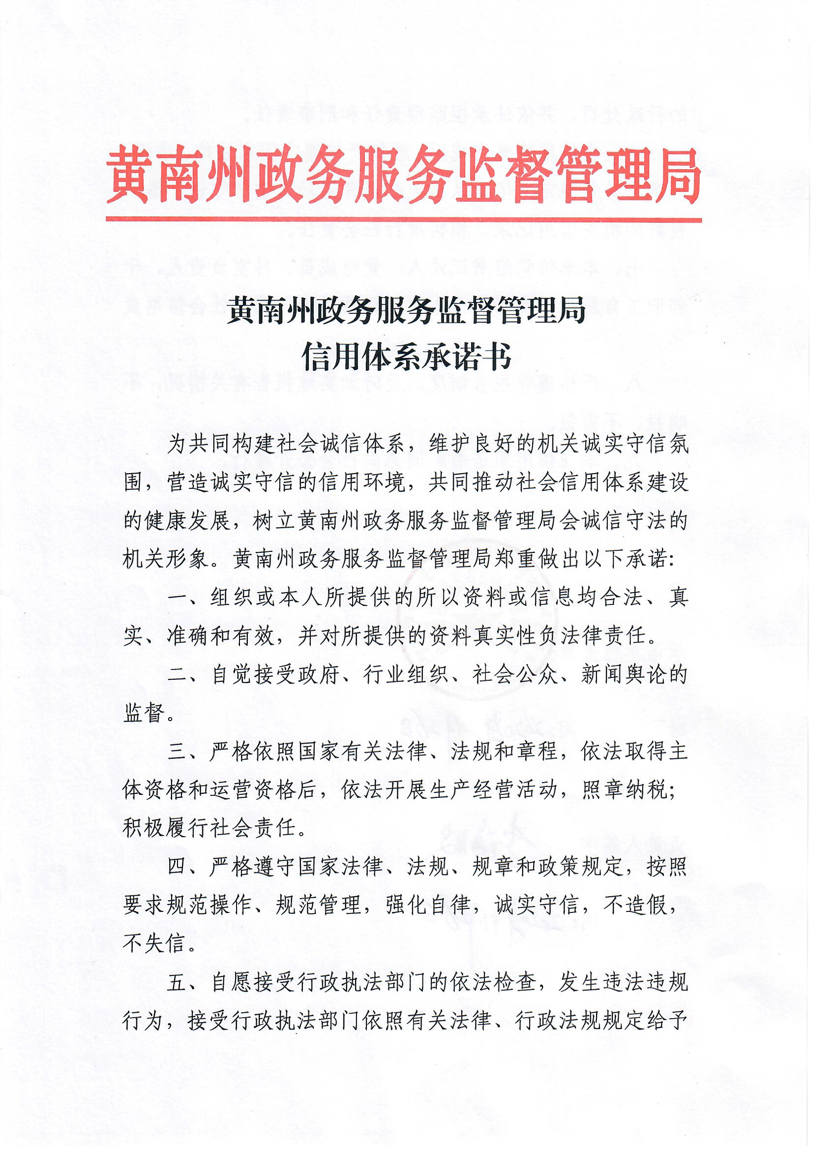 黄南州政务服务监督管理局社会信用建设承诺书