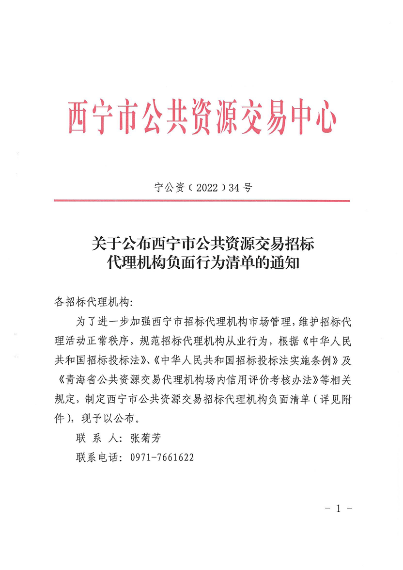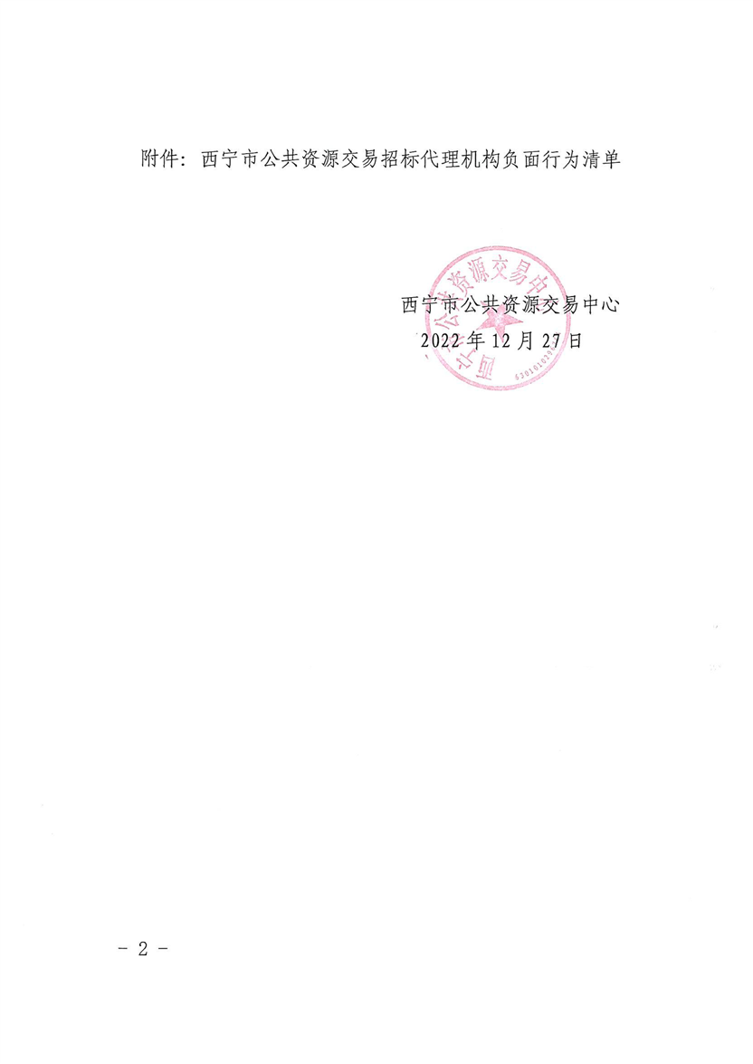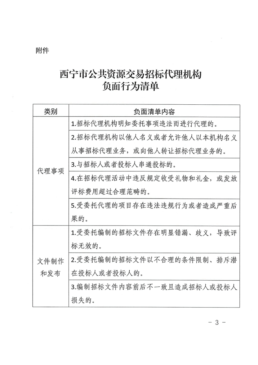 关于公布西宁市公共资源交易招标代理机构负面行为清单的通知