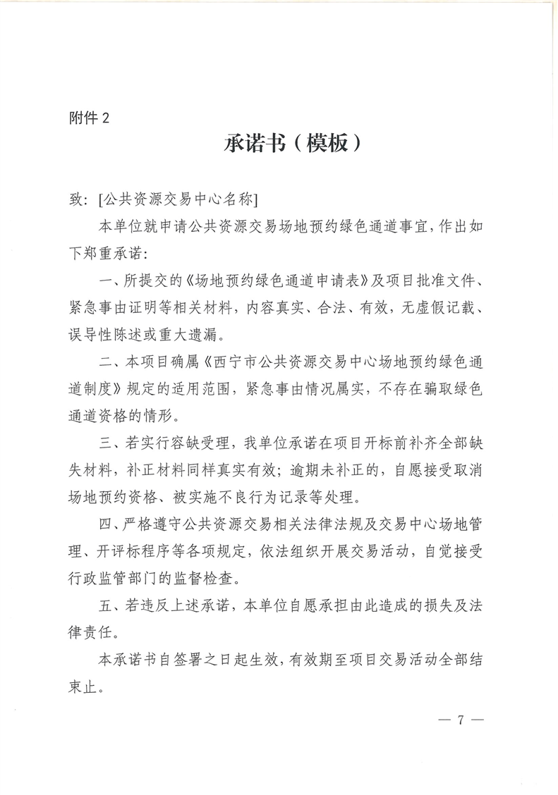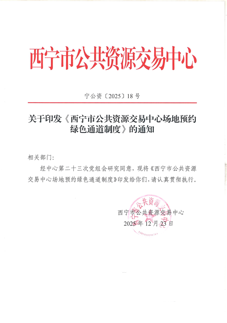 关于印发《西宁市公共资源交易中心场地预约绿色通道制度》的通知