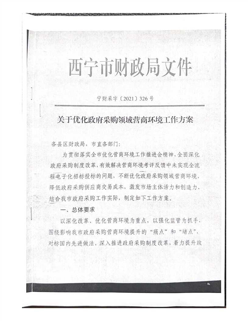 《关于优化政府采购领域营商环境工作方案》 宁财采字〔2021〕326号
