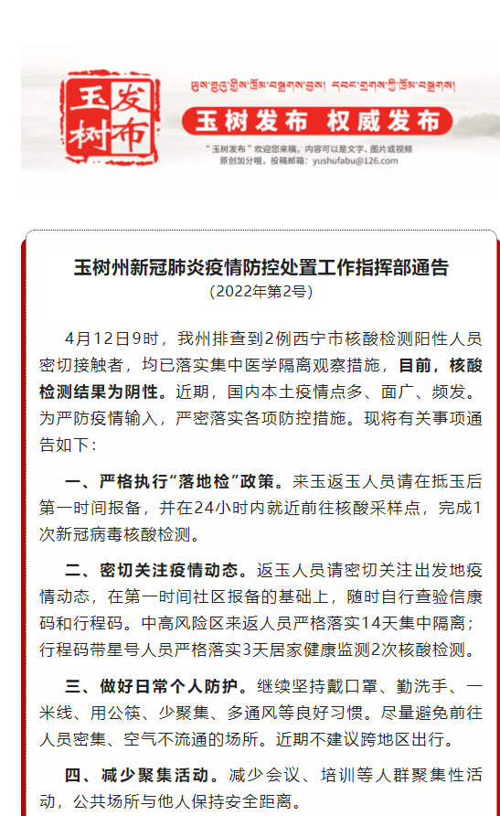 玉树州新冠肺炎疫情防控处置工作指挥部通告(2022年第2号)