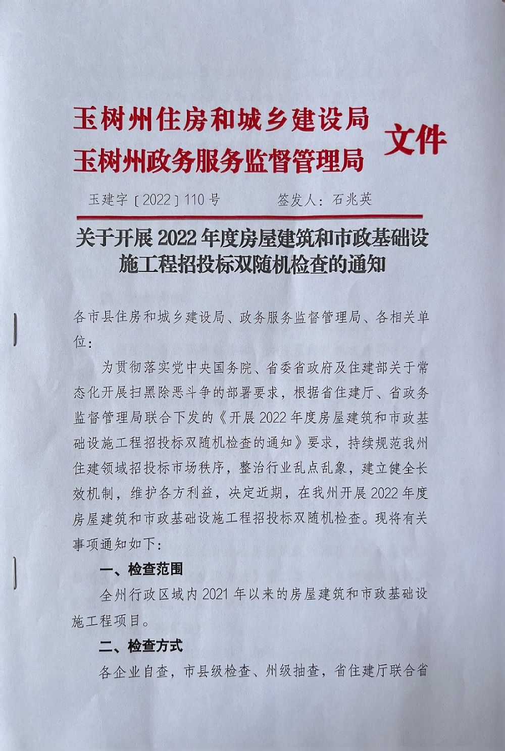 关于开展2022年度房屋建筑和市政基础设施工程招投标双随机检查的通知