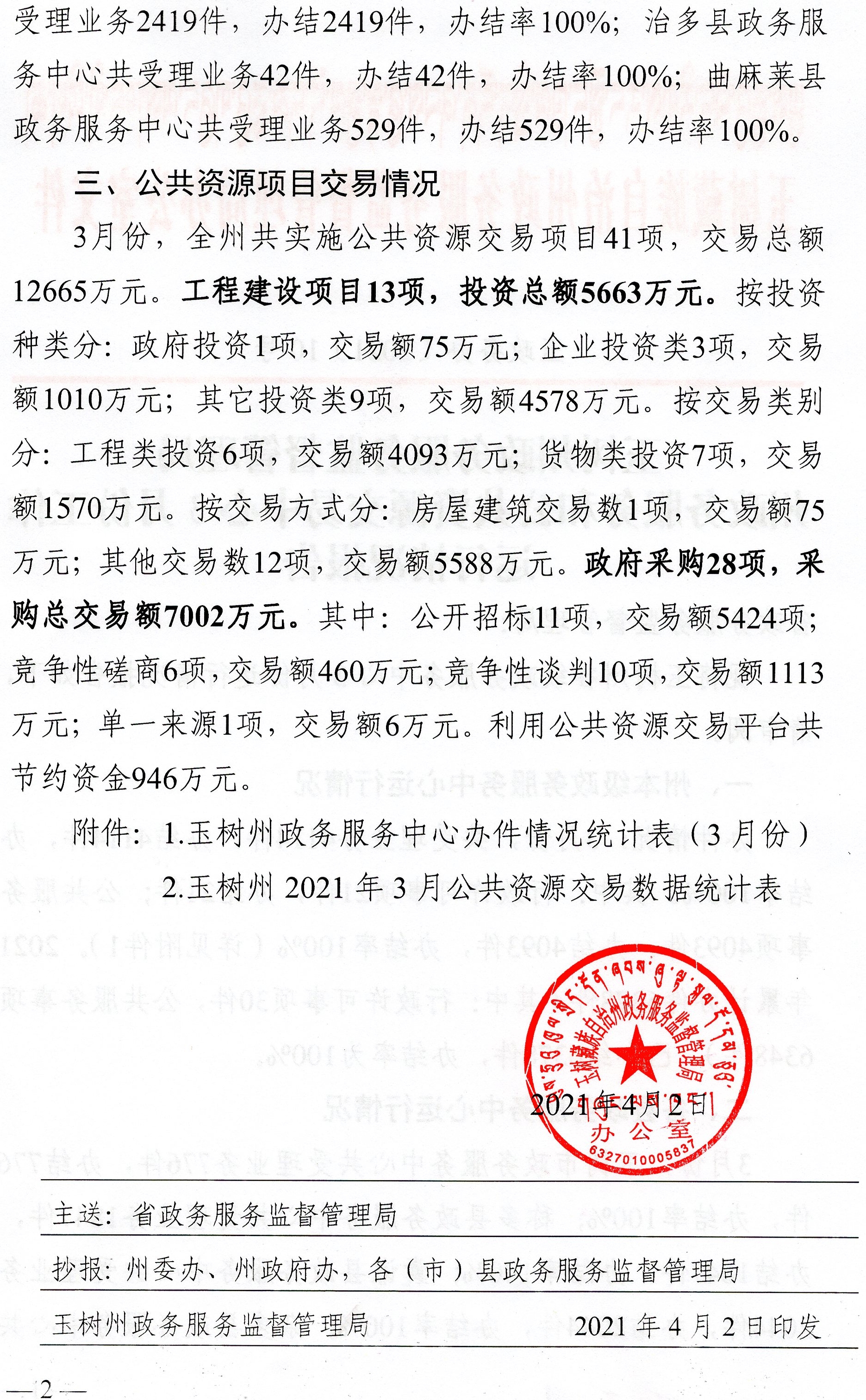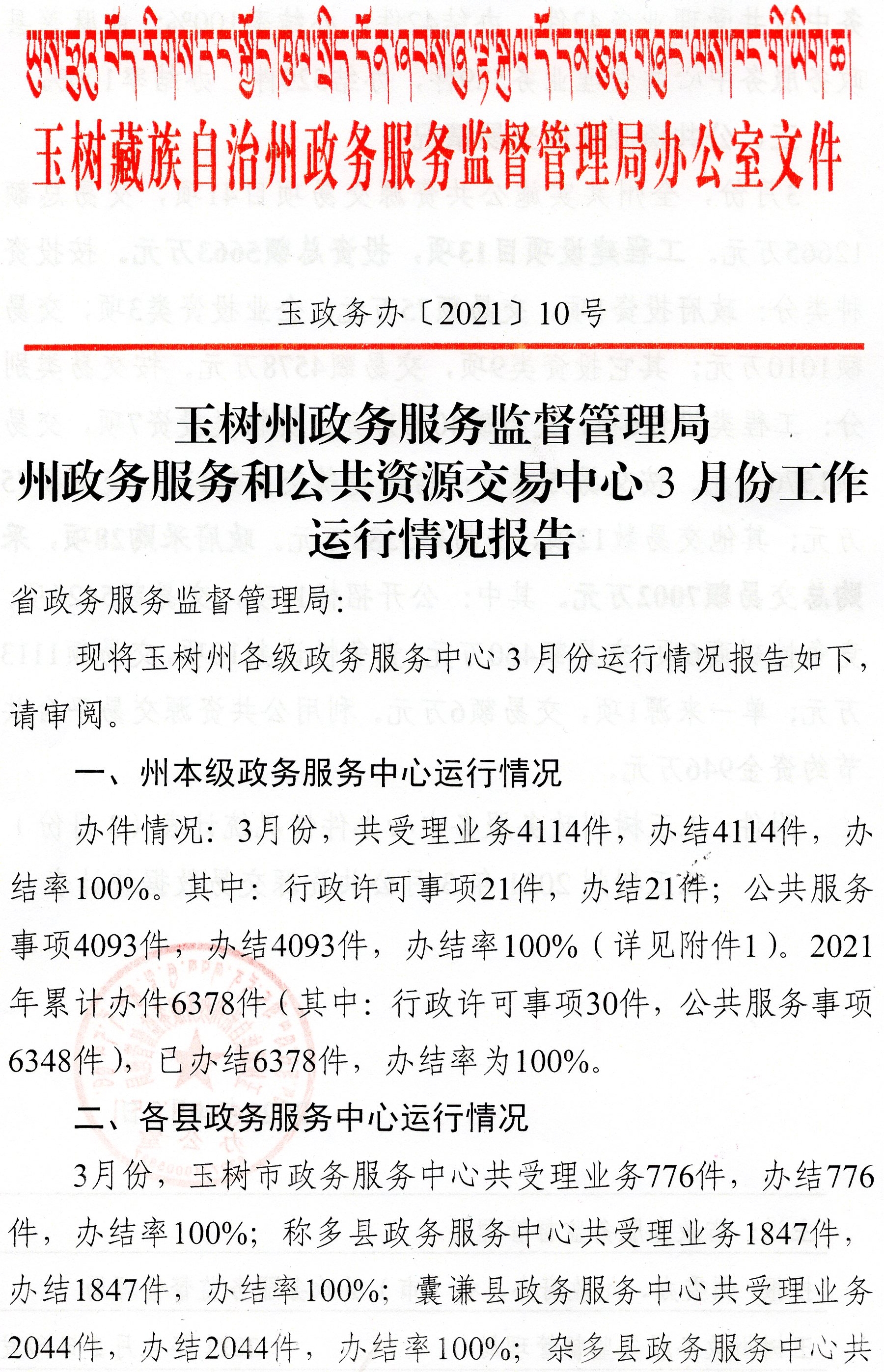玉树州政务服务监督管理局政务服务和公共资源交易中心3份工作运行情况报告