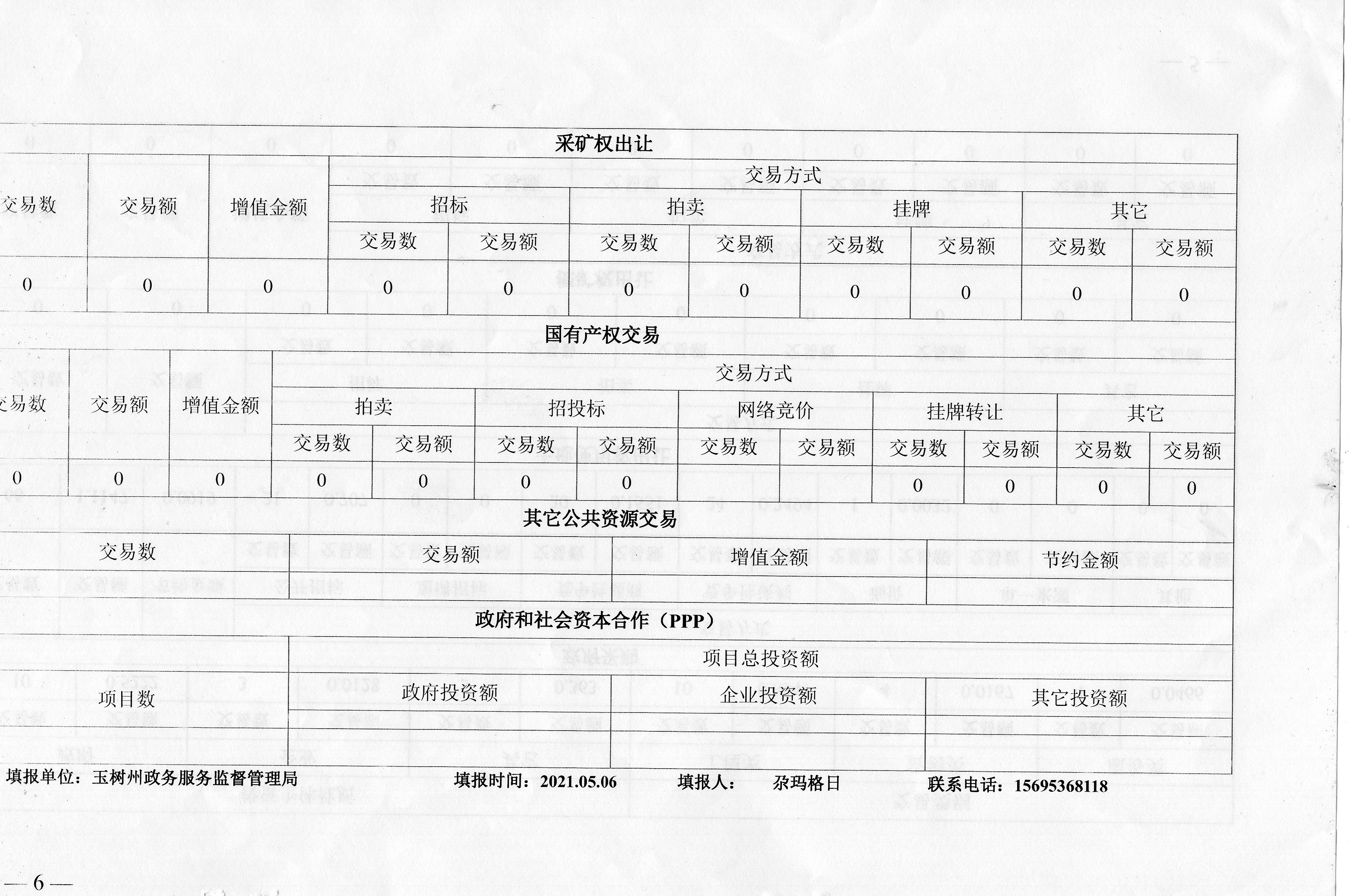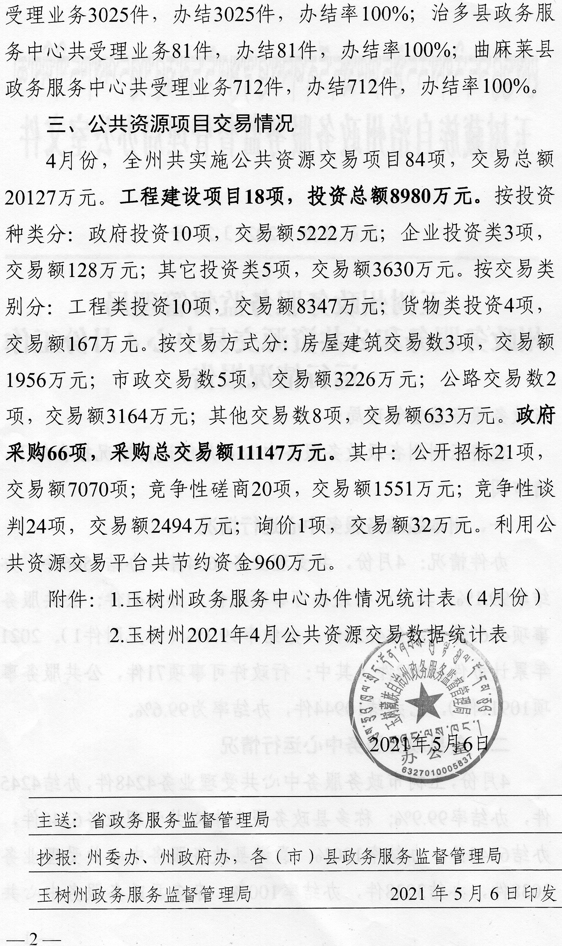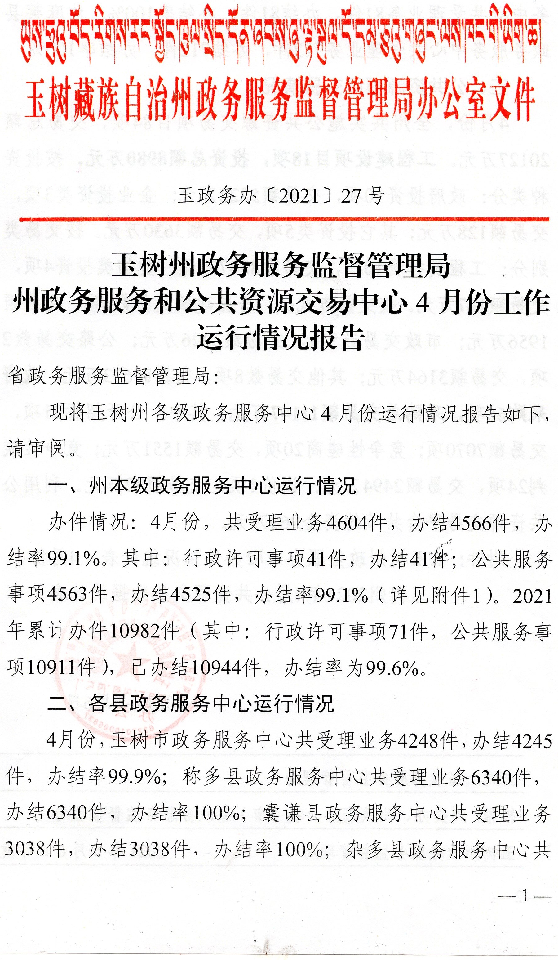 玉树州政务服务监督管理局政务服务和公共资源交易中心4份工作运行情况报告