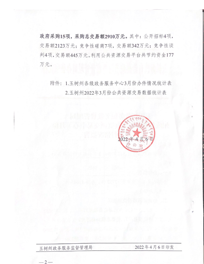 玉树州政务服务监督管理局政务服务中心和公共资源交易中心3月份工作运行情况报告