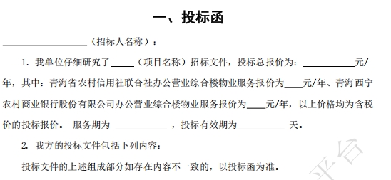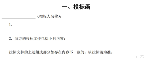 因招标文件第六章投标文件格式中第一项投标函的第1条内容未显示,现做出澄清,其他内容均未发生改变。