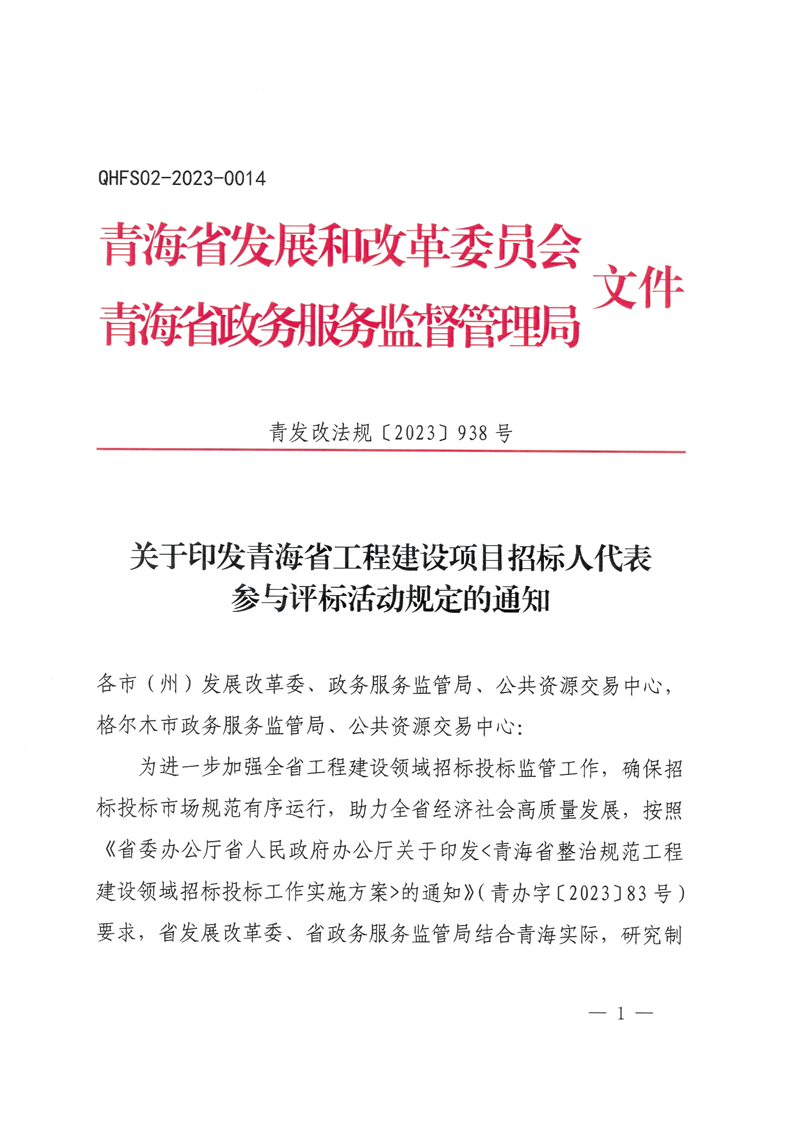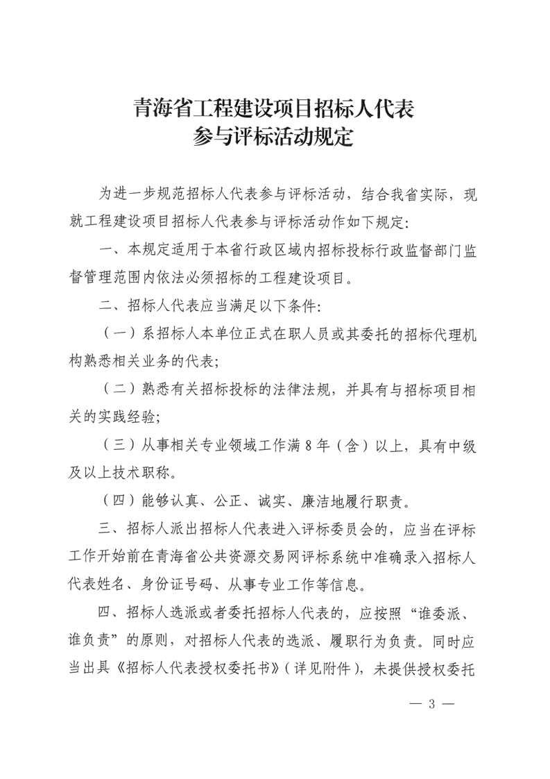 关于印发青海省工程建设项目招标人代表参与评标活动规定的通知